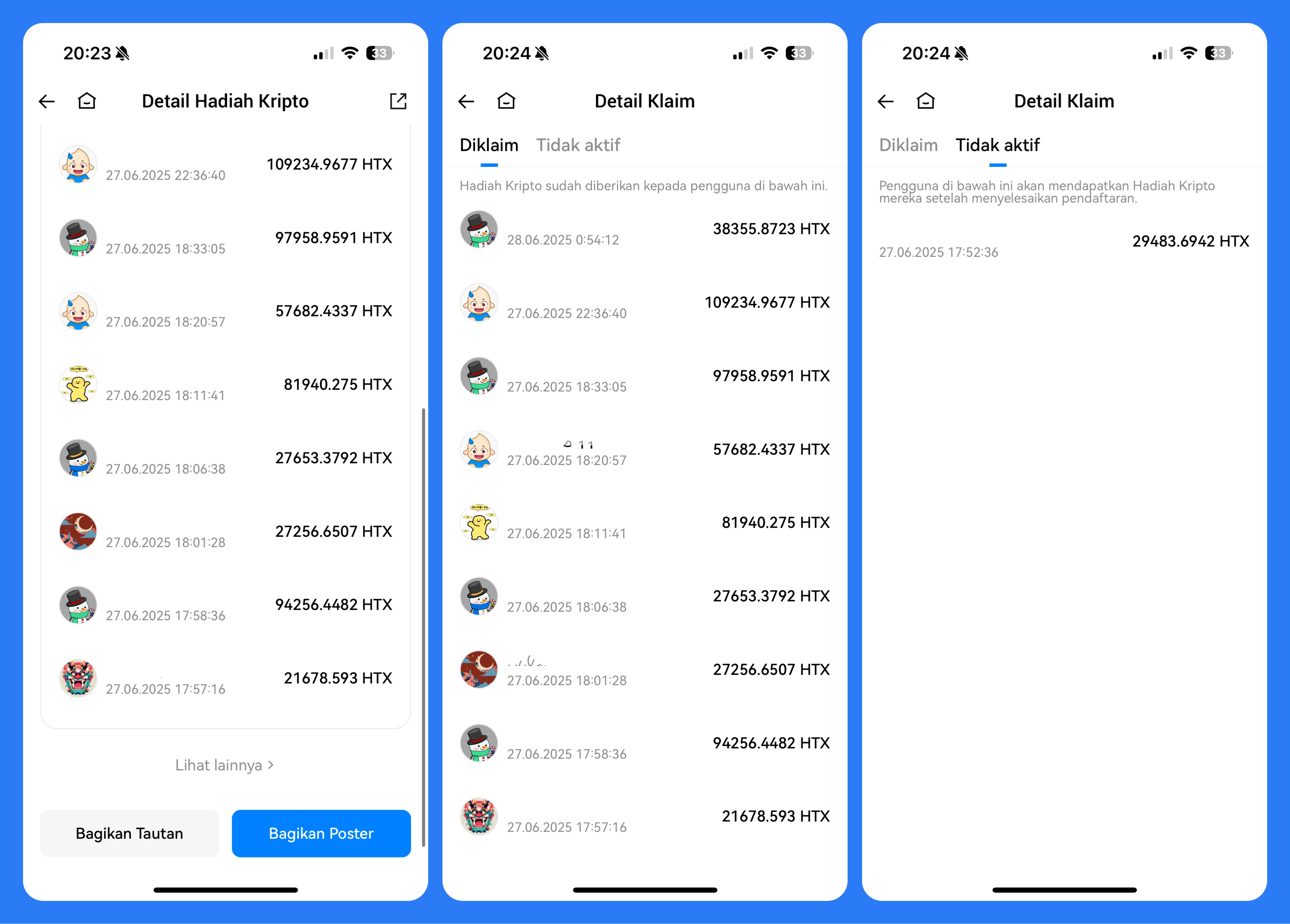 Catatan: Mengirim atau mengklaim hadiah memerlukan versi terbaru aplikasi HTX Anda (Android: v10.53.0/iOS: v10.54.0). Situs web kami hanya mendukung klaim hadiah.