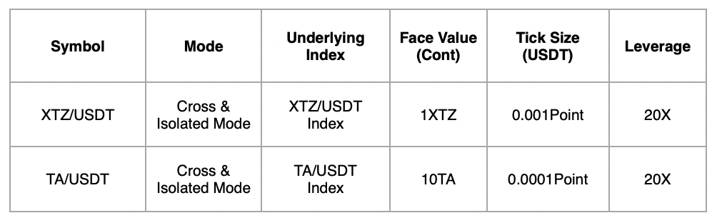 HTX has launched XTZ/USDT and TA/USDT perpetual futures, which supports 1-20x leverages for long and short trades.