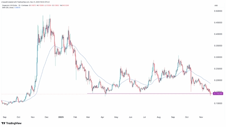 狗狗币价格技术分析 日线图显示,狗狗币价格在过去几个月一直处于强劲的下跌趋势中。其价值已下跌超过 53%,从 9 月份的 0.3063 美元跌至目前的 0.1425 美元。 仔细观察可知,当前价格是一个重要的支撑位,自今年 3 月以来,狗狗币多次跌破该支撑位均未成功。每次跌至该支撑位,狗狗币都会出现两位数的反弹。 因此,最有可能的狗狗币价格预测是,在即将推出的 21Shares 和 Grayscale 狗狗币 ETF 之前,投资者会逢低买入,狗狗币价格将在该支撑位附近反弹。反弹可能会将其推至下一个关键阻力位 0.200 美元,该阻力位比当前价格高出约 45%。 另一方面,跌破该支撑位则表明空头最终占据上风,未来几周价格将进一步下跌。 这样的下跌可能会将其推至下一个关键支撑位 0.10 美元。
