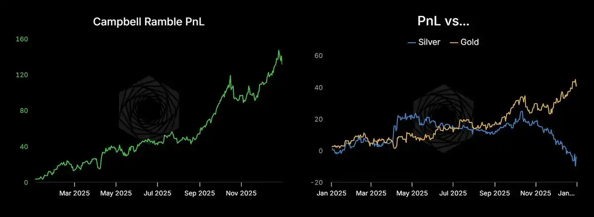 The author outlines a macro investment framework centered on three key themes: the end of globalization, accelerating resource nationalism, and the rise of AI-driven structural shifts. The portfolio returned 131%, largely due to significant long positions in gold and silver.