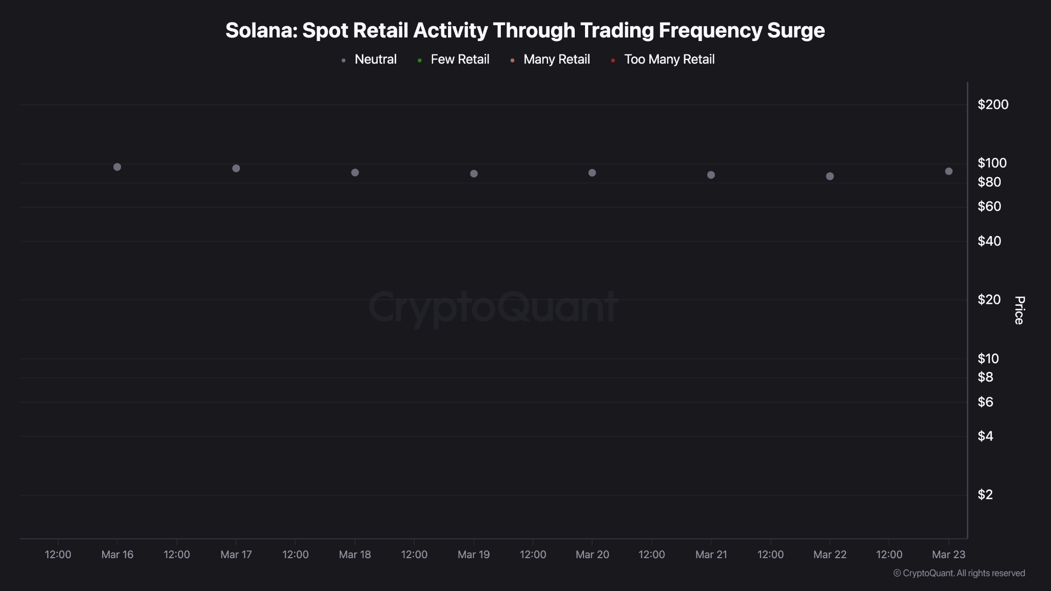 Solana’s retail participation indicators have remained largely neutral throughout the past week. There has been little to no meaningful transition into “many retail” or “too many retail” zones.