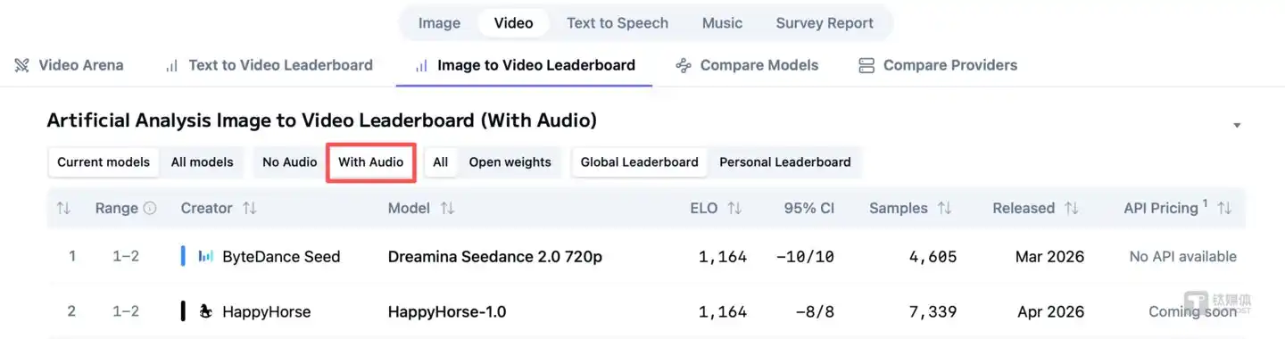 However, its "specialization" is also a fact. Once audio is included, it scored 1217 points in the "Text-to-Video (With Audio)" track, losing to Seedance 2.0 (1220 points) by just 3 points. In other words, HappyHorse-1.0 kicked through ByteDance's pure visual technical reputation defense line, but Seedance still held its ground in the audio-visual comprehensive experience.