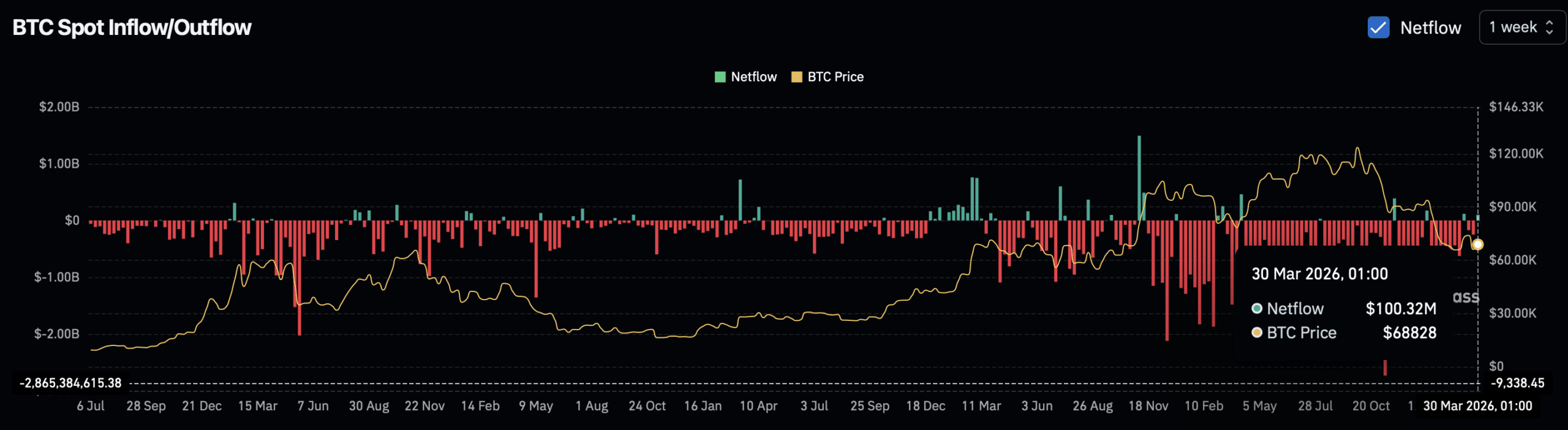 Recent data shows a net inflow of $100 million, marking the third consecutive week of positive netflows. This pattern typically aligns with increased selling pressure, although final confirmation will depend on the weekly close.