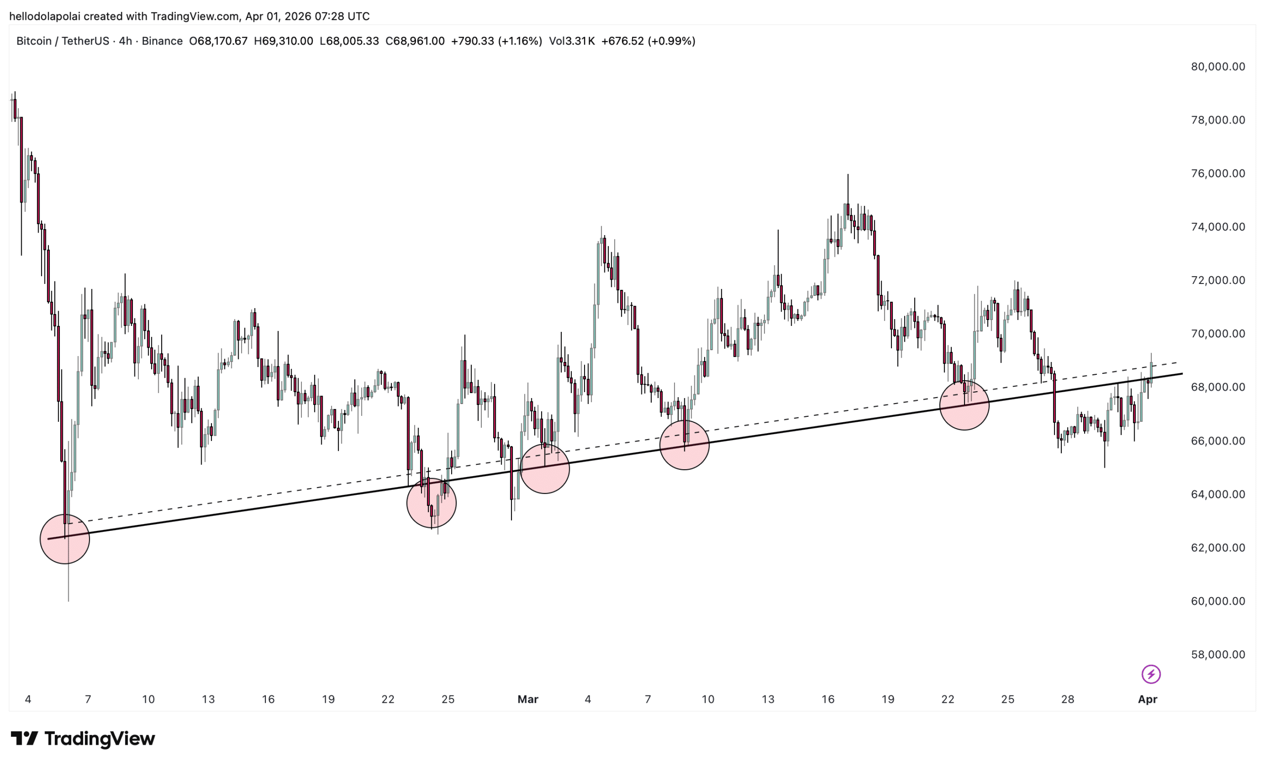 In the short term, price action appears to favor retail sentiment. BTC staged a strong rebound, reclaiming the $68,000 level in early trading on the 1st of April.