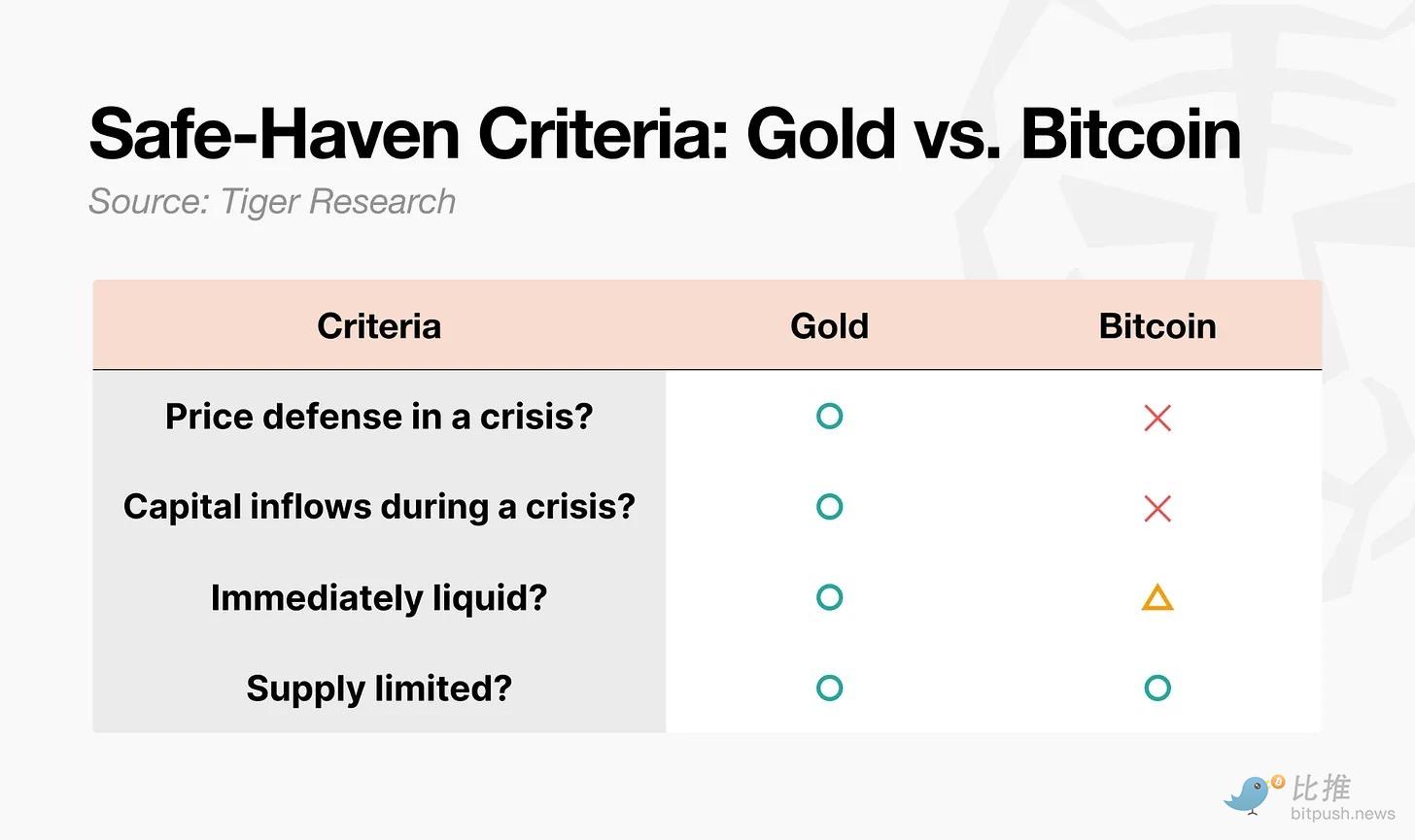 A safe-haven asset is not just one whose price rises. In academic definition, a safe-haven asset is one whose correlation with other assets drops to zero or turns negative during extreme market downturns. The key is whether its reaction in a crisis is predictable. Measured by this standard, the gap between gold and Bitcoin is evident.