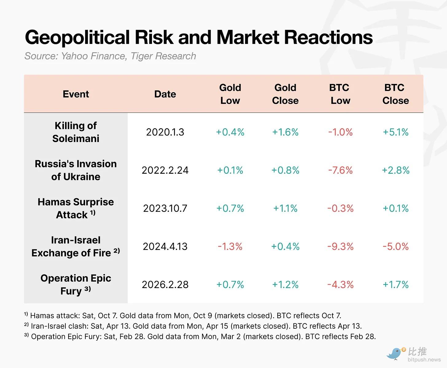 On February 28, 2026, the U.S. and Israel launched an attack on Iran. When "Operation Epic Fury" was announced, the price of gold immediately rose. In contrast, Bitcoin fell intraday to $63,000. Although it recovered within a day, its reaction was starkly different.