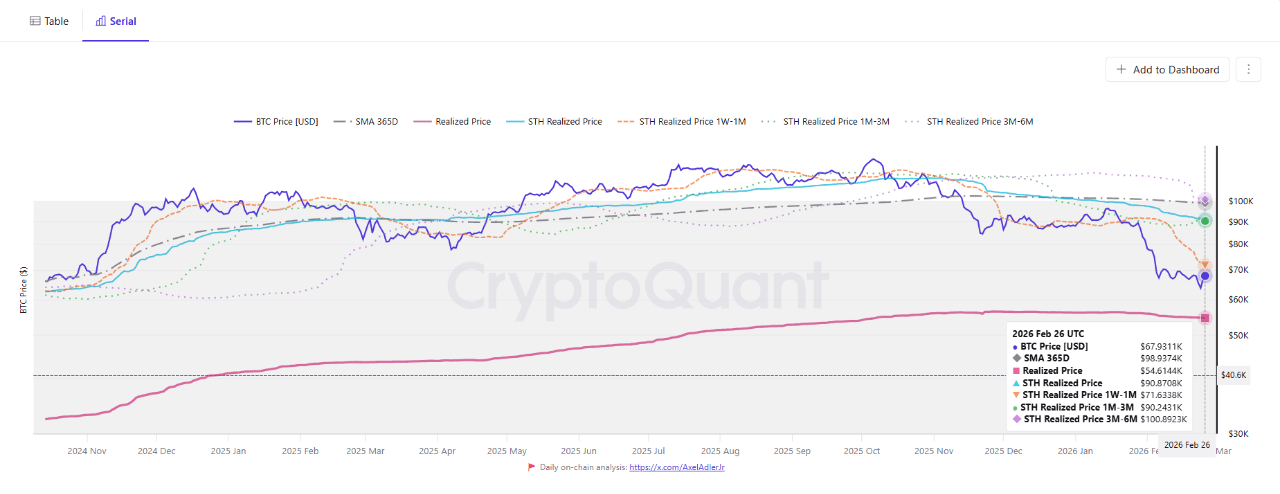 When the Bitcoin price trades beneath this level, it signals that the latest participants are under severe heat. Hence, recovery attempts towards this price level would typically be met with significant resistance, as this cohort would want to exit at break-even.