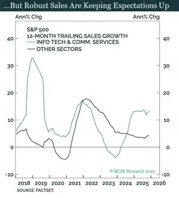 S&P 500 Sector Sales Growth Comparison: Tech / Communication Services vs. Other Sectors