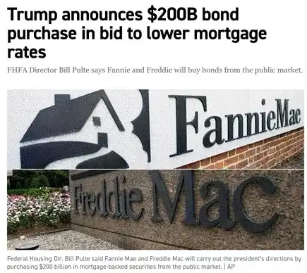 Trump comes from the real estate industry and understands the financing of real estate projects well. Recently, Trump issued a new policy requiring US government-sponsored enterprises (GSEs) Fannie Mae and Freddie Mac to use funds on their balance sheets to purchase $200 billion worth of mortgage-backed securities (MBS) [5]. Before Trump issued this directive, these funds were idle on Fannie and Freddie's balance sheets. Therefore, this policy will directly increase US dollar liquidity. If this policy proves effective, Trump is likely to introduce similar measures further.