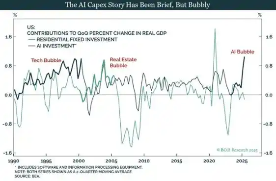 Bubble or not, increased spending to "win the AI competition" is driving US economic growth. Trump promised during his campaign to run the economy "hot," so even if future retrospect shows that the return on equity for these expenditures is below the cost of capital, he will not stop now.