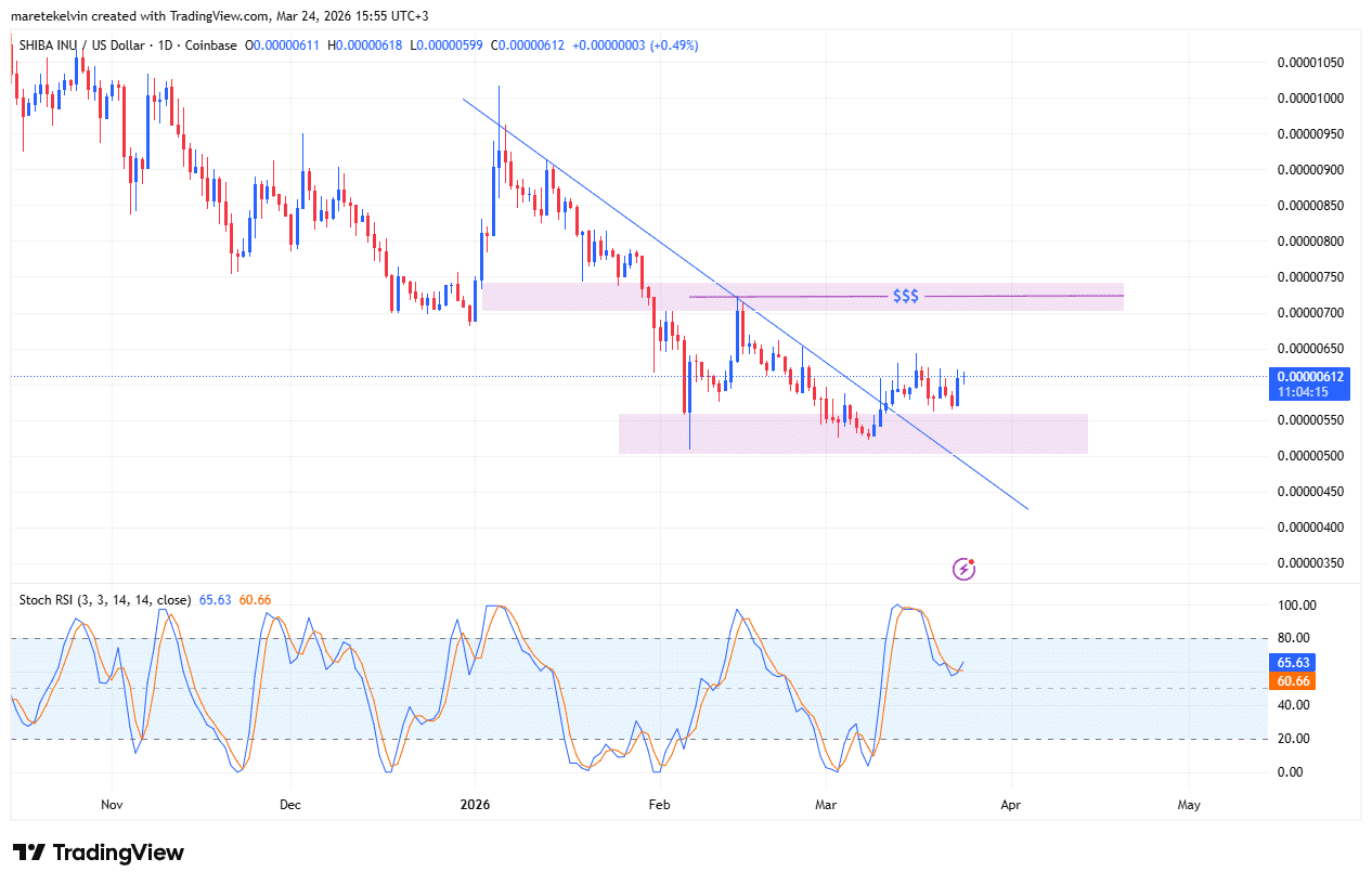 A shift in structure is beginning to emerge for Shiba Inu [SHIB]. After weeks of consolidation, the token has broken above a descending trend line resistance that had capped price action for nearly two months.