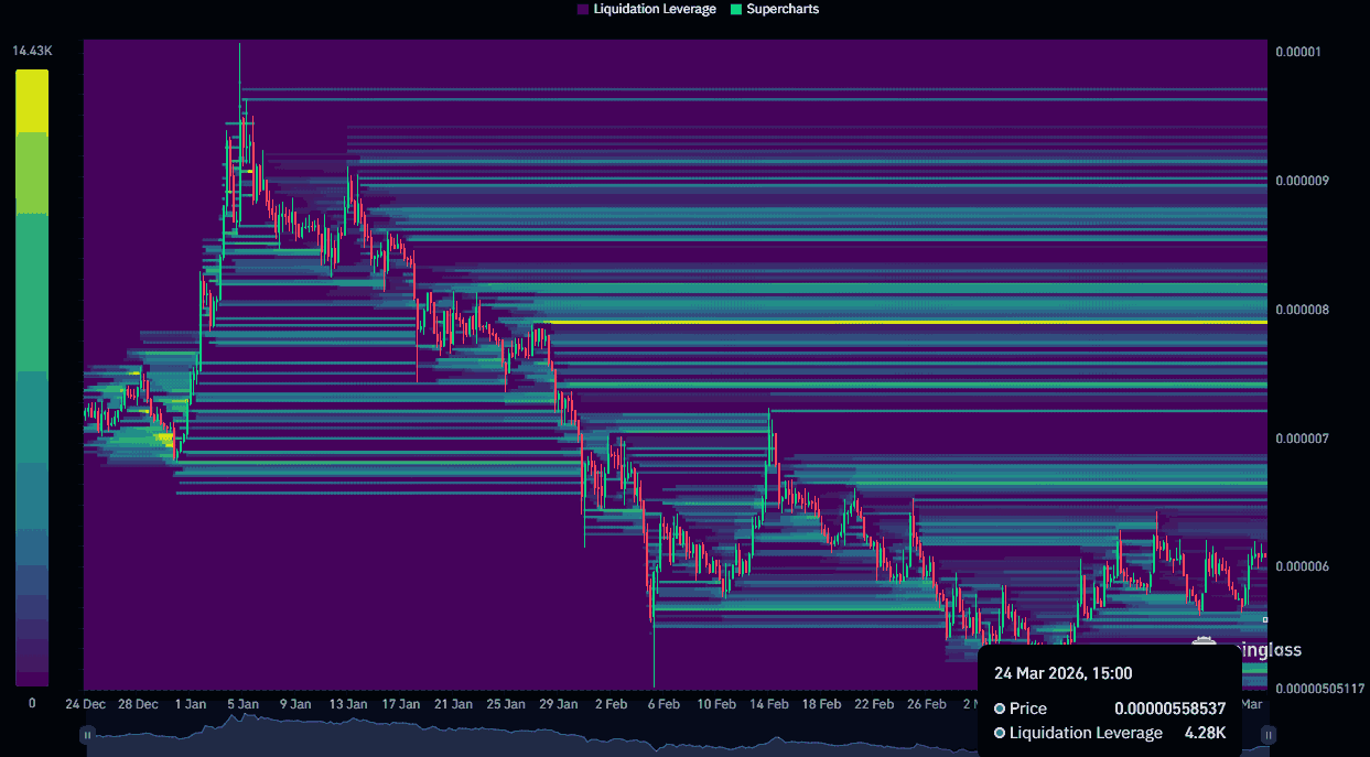If this retest holds, it could set the stage for the next rally, with $0.000065 emerging as the next key target in case of a successful reversal. A significant liquidity cluster rests near the $0.000065 price level.