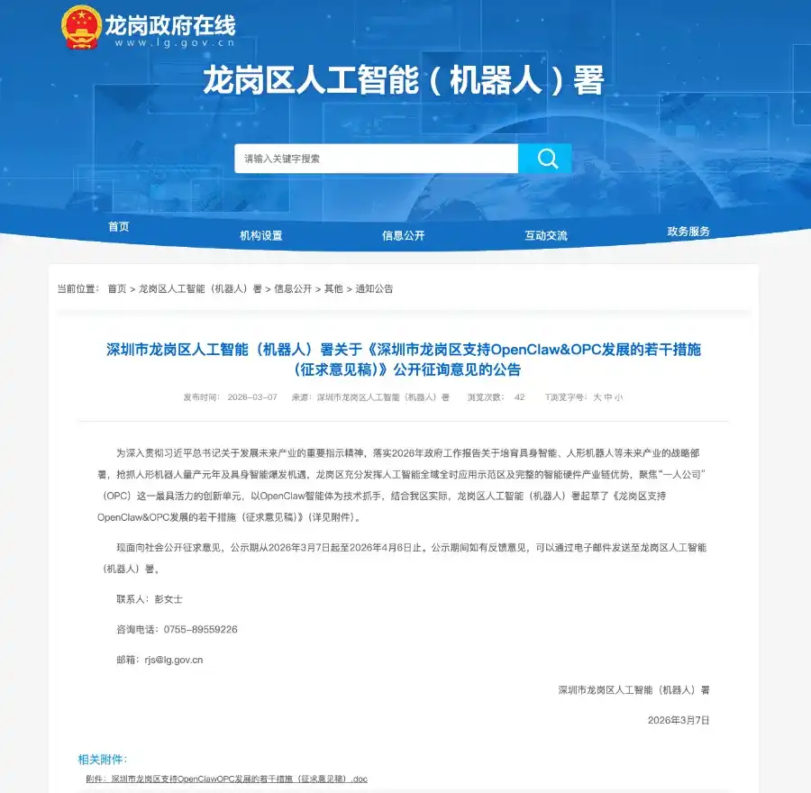 To seize the opportunities presented by the intelligent economy, Shenzhen's Longgang District released the "Several Measures of Shenzhen Longgang District to Support the Development of OpenClaw & OPC (Draft for Solicitation of Comments)" (hereinafter referred to as the "Lobster Ten") on March 7. The policy aims to make "zero-cost startup" its core highlight, extending an olive branch to global AI agent developers and OPC (One Person Company) entrepreneurs, and positioning the district as the preferred destination for global AI agent entrepreneurship.