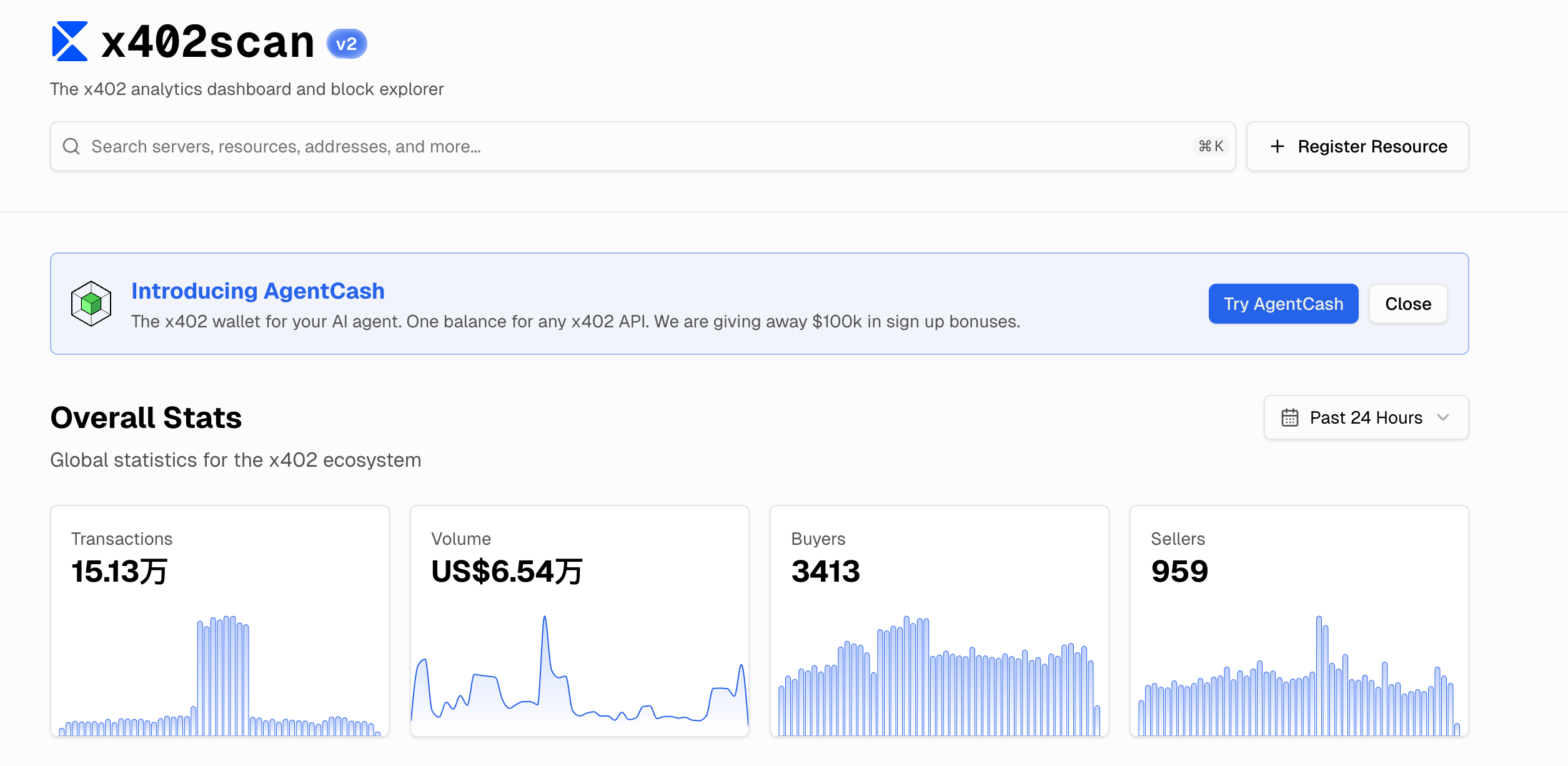 Coinbase's x402 protocol is currently the earliest and most widely adopted AI payment protocol. According to x402scan data, the total transaction volume across the entire ecosystem in the past 24 hours was $65,400. 150,000 transactions, averaging less than 50 cents per transaction.
