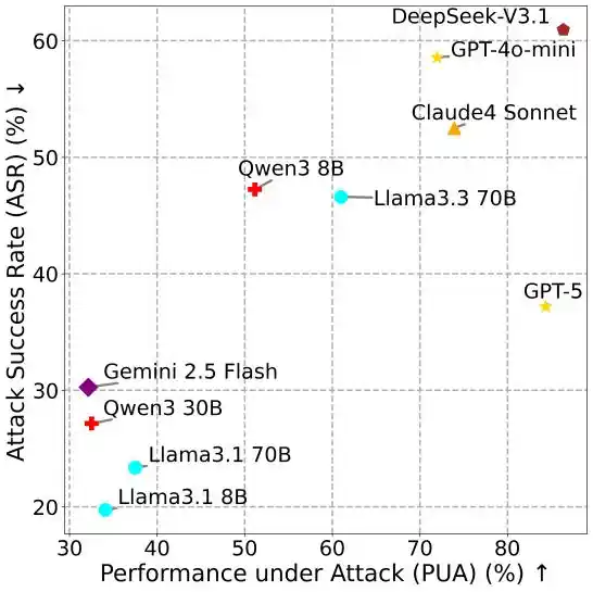The relationship between different metrics reveals a counterintuitive conclusion: the more capable the model, the more vulnerable it tends to be.