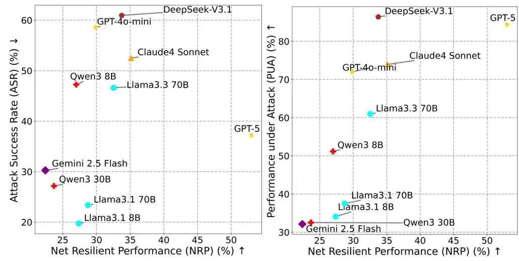 Where PUA (Performance Under Attack) is the proportion of user tasks the Agent completes in an adversarial environment, and ASR is the attack success rate. NRP aims to assess the overall risk resilience of an Agent in resisting attacks while maintaining performance, providing a comprehensive quantitative standard that balances performance and security.