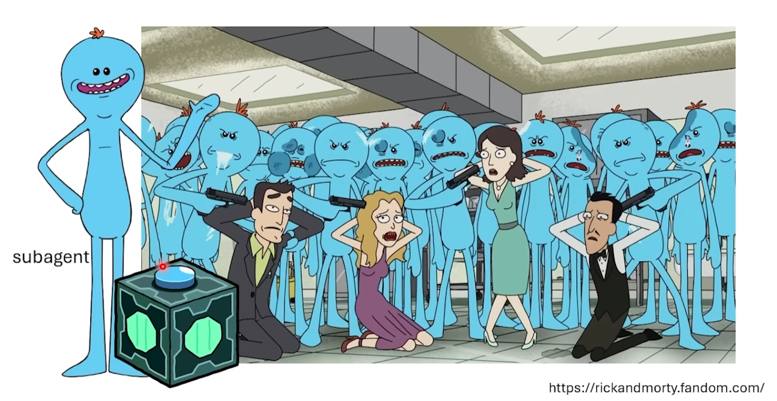 The reason is simple: if not restricted, the model might keep splitting and reproducing endlessly because a subtask cannot be completed,子子孙孙endless, finally陷入infinite recursion死循环. Like the "Mr. Meeseeks" in the cartoon "Rick and Morty"—created to perform a task, if not completed, create another one,结果created a whole civilization of Mr. Meeseeks, none actually solved the problem. To prevent this kind of "infinite nesting" disaster, the framework level directly cuts off the sub-agent's reproductive ability.