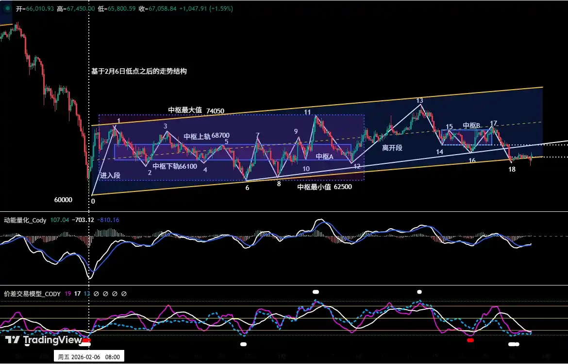 • BTC Market Forecast Verification: In last week's article, we clearly stated that the market would maintain a consolidation and adjustment pattern, observing the battle between bulls and bears near the channel's lower rail (formed from the February 6th low). The current market movement validates our previous forecast.