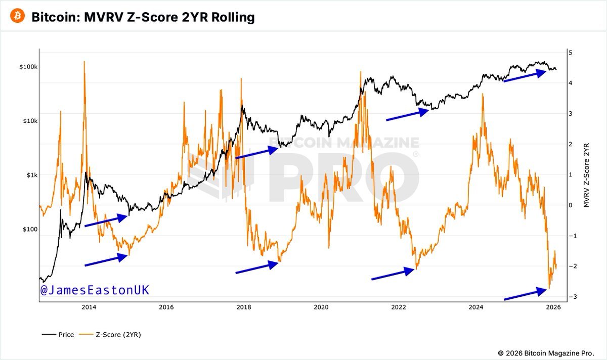 According to market analysts Michaël van de Poppe and James Easton, the Bitcoin MVRV Z-Score is flashing a potential end to the bearish market phase seen over the past four months. Notably, after touching the $126,000 price level in early October, BTC has experienced significant selling pressure, resulting in a price twice retesting the $80,000 region.