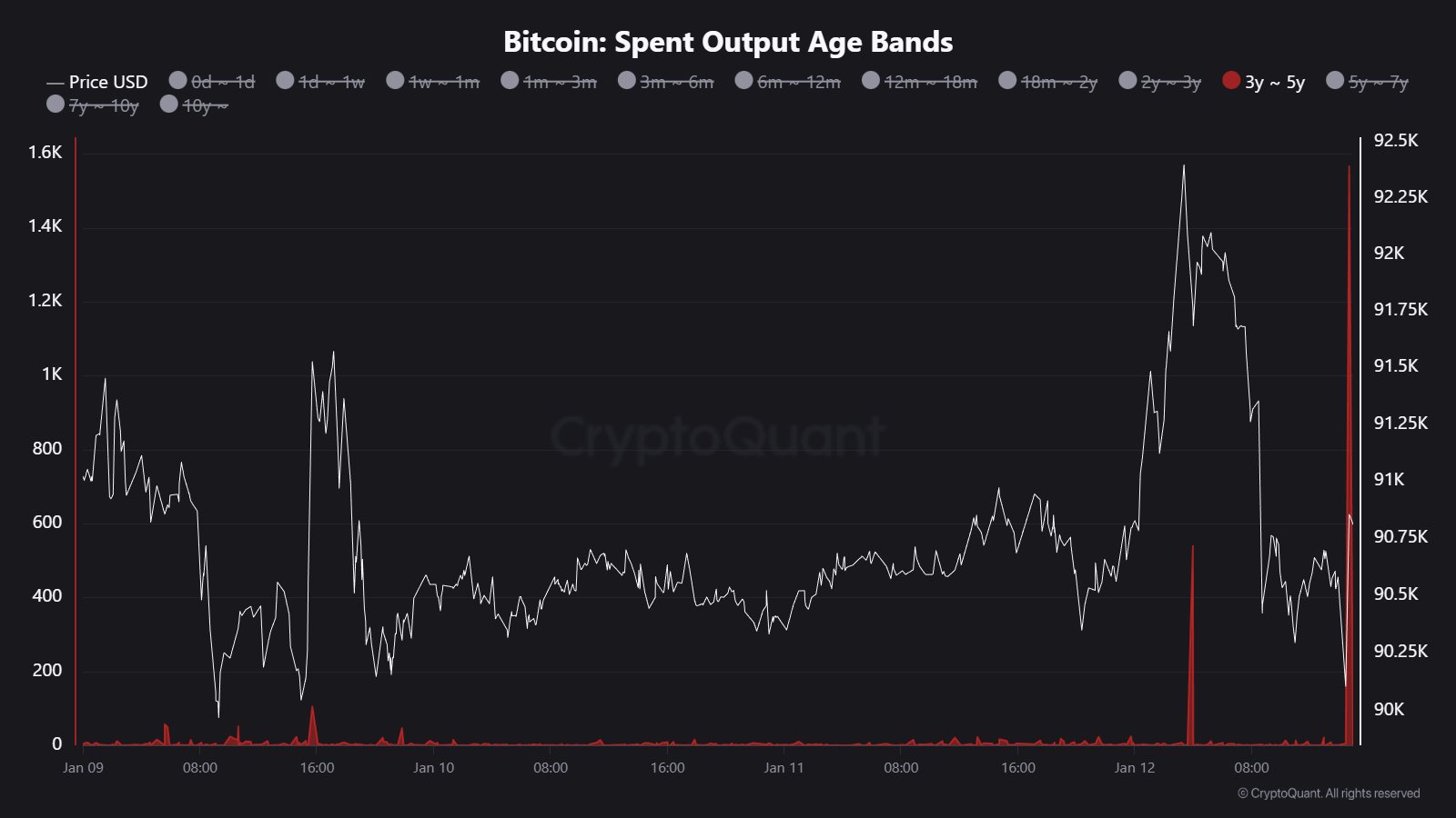 On-chain data shows tokens aged between 3 and 5 years old have just moved on the Bitcoin network with two large transactions.