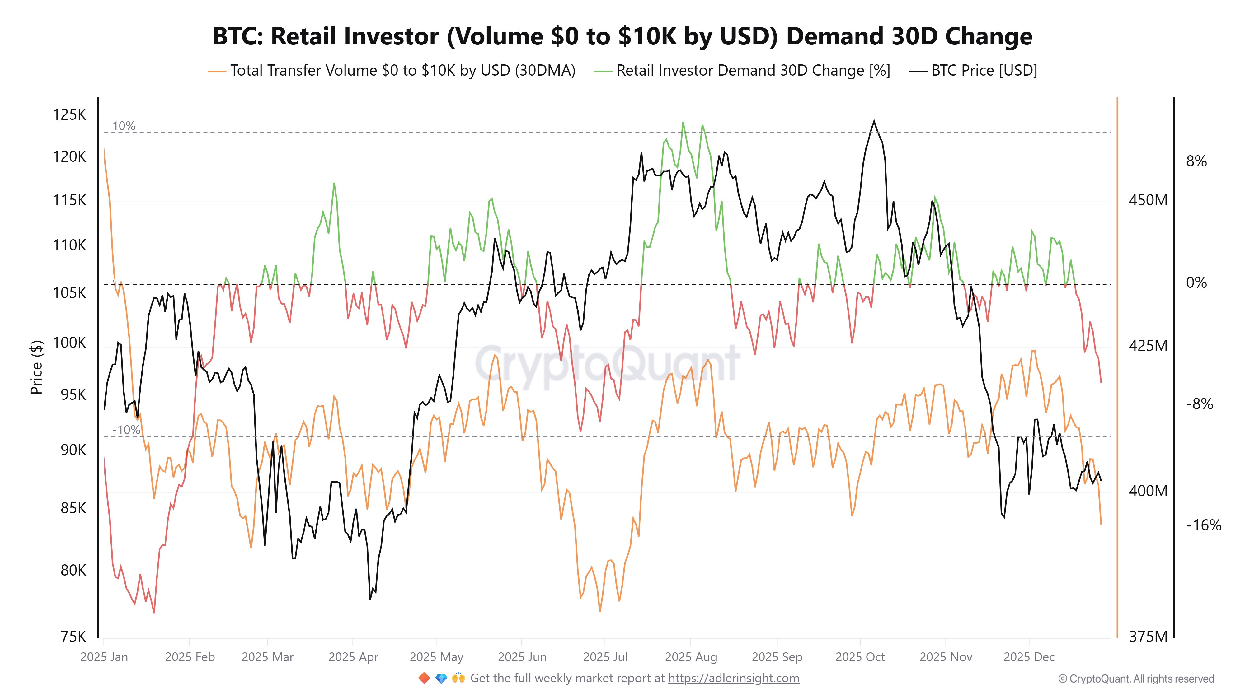 AIt indicates a lack of fresh retail inflows and declining enthusiasm among smaller investors, signaling a renewed slowdown in small transaction activity since mid-December.
