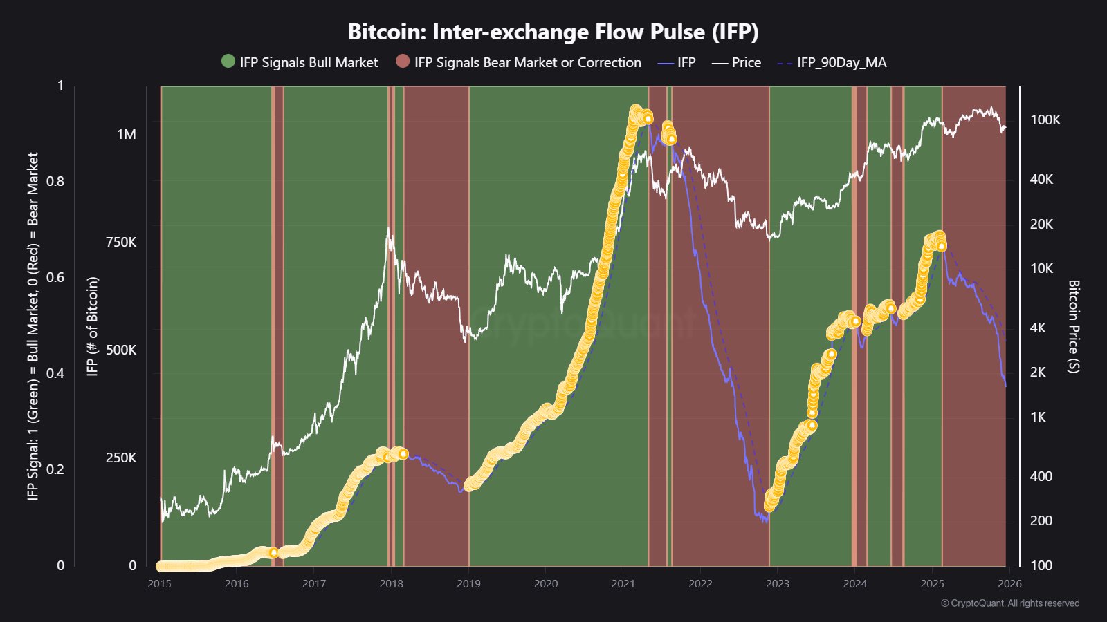 On-chain data shows the Bitcoin Inter-exchange Flow Pulse (IFP) has rapidly been going down recently, a sign of cooling derivatives interest.