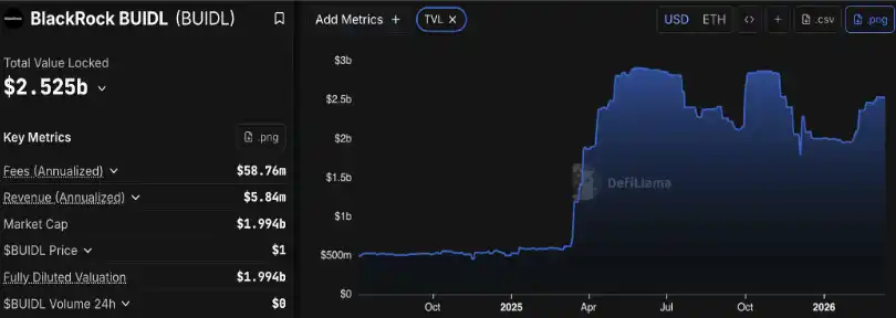 Figure: BlackRock's BUIDL fund currently has a TVL of $2.5 billion