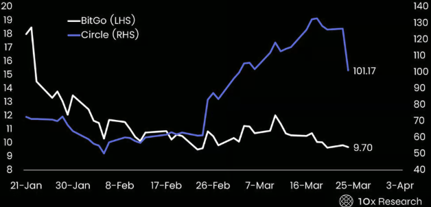 BitGo vs. Circle – BitGo's stock fell ~50% rapidly post-IPO