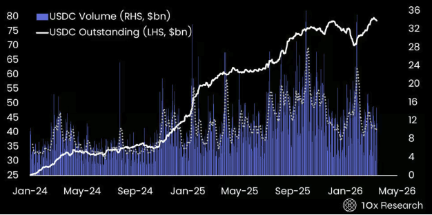 USDC Outstanding Balance vs. USDC Trading Volume