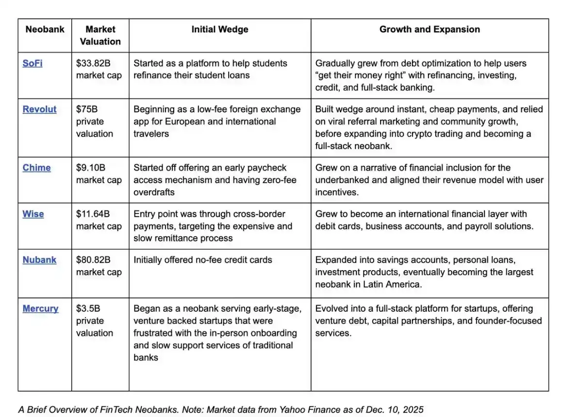 This trajectory is highly similar to the rise of fintech neobanks: success was never just about "issuing cards" or "making an App," but about mastering a specific user group, from students (SoFi), to low-income families (Chime), to international travelers (Wise and Revolut), and building trust, loyalty, and scaled transaction volume on that basis.