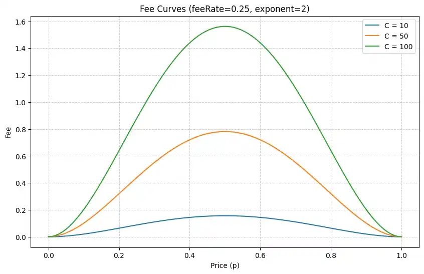 On January 6th of this year, Polymarket officially began charging transaction fees for markets related to "15-minute cryptocurrency price movements." The specific fee rate varies with the real-time odds of the market — the closer the odds are to 0% or 100%, the lower the fee; conversely, the closer the odds are to 50%, the higher the fee, with a maximum of 1.56%.