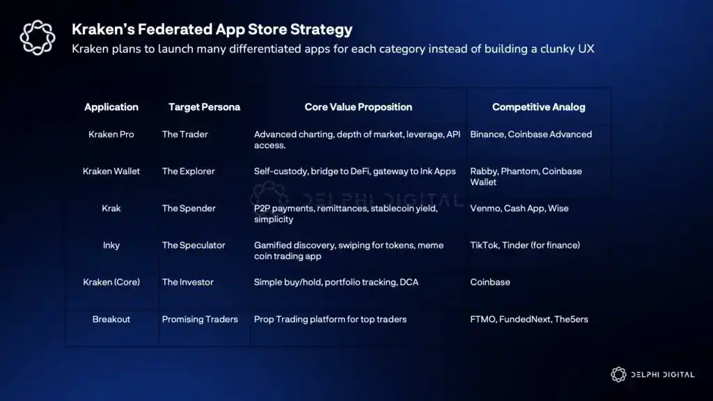 Kraken noticed that too many features often confuse users rather than drive conversion. Complexity that represents powerful functionality in some regions can be a barrier in others. While other platforms seek to unify products, Kraken is doing the opposite, segmenting the user experience while unifying the underlying technology.