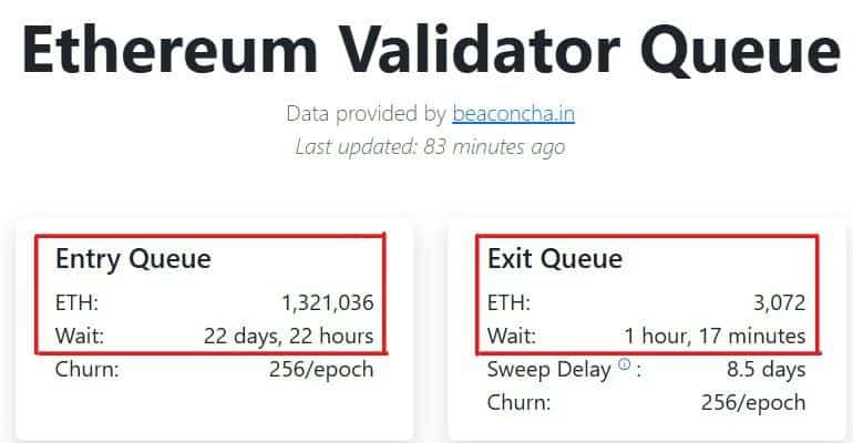 The Ethereum staking queue was longer than the unstaking queue, revealed X user Bull Theory. Around 1.32 million ETH is lined up to enter staking, with an average wait time of 23 days.