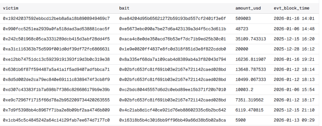 Previously, the biggest constraint for such scams was cost. Address poisoning requires initiating millions of on-chain transactions, which themselves do not directly generate revenue unless a victim sends funds to the wrong address.