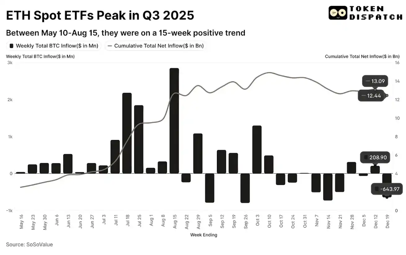 Between June 1st and September 30th, 2025, the cumulative inflow into ETH ETFs grew nearly fivefold, breaking the $10 billion mark.