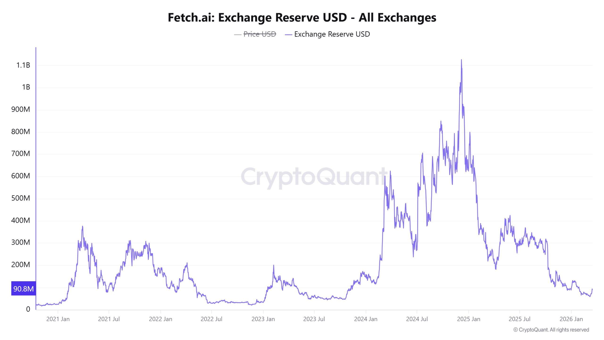 The Exchange Reserve USD has increased by 16.9%, reaching approximately $92.49 million, indicating that more FET tokens are being moved onto trading platforms. This shift introduces additional sell-side supply, which could create overhead pressure during upward price attempts.