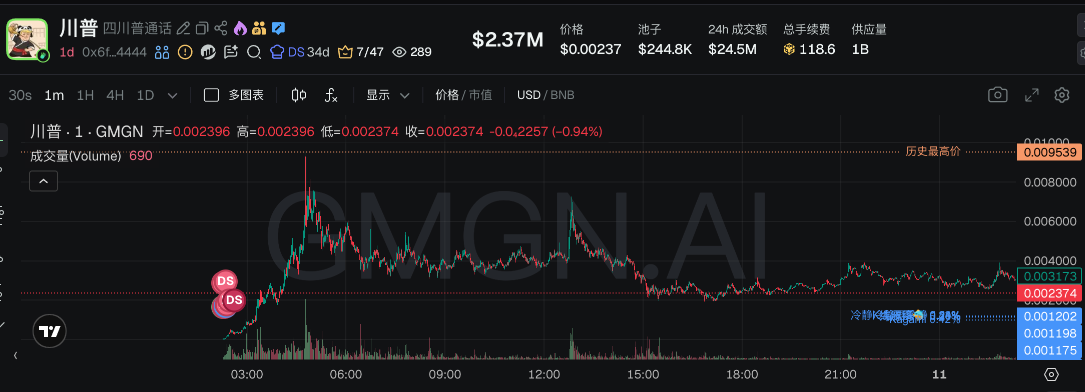 Previously, this Meme coin surged to around $52 million and has since pulled back to approximately $36 million. Whether it can reach a new all-time high (ATH) again still depends on achieving milestone accomplishments like Binance futures and spot listings.