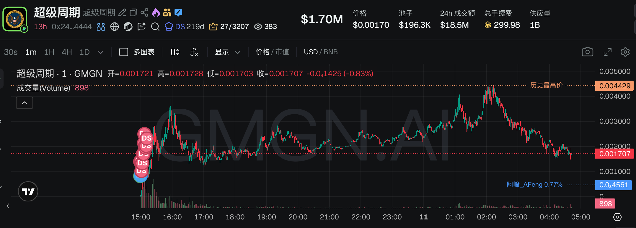 GMGN Link: https://gmgn.ai/bsc/token/0x1a1e69f1e6182e2f8b9e8987e83c016ac9444444