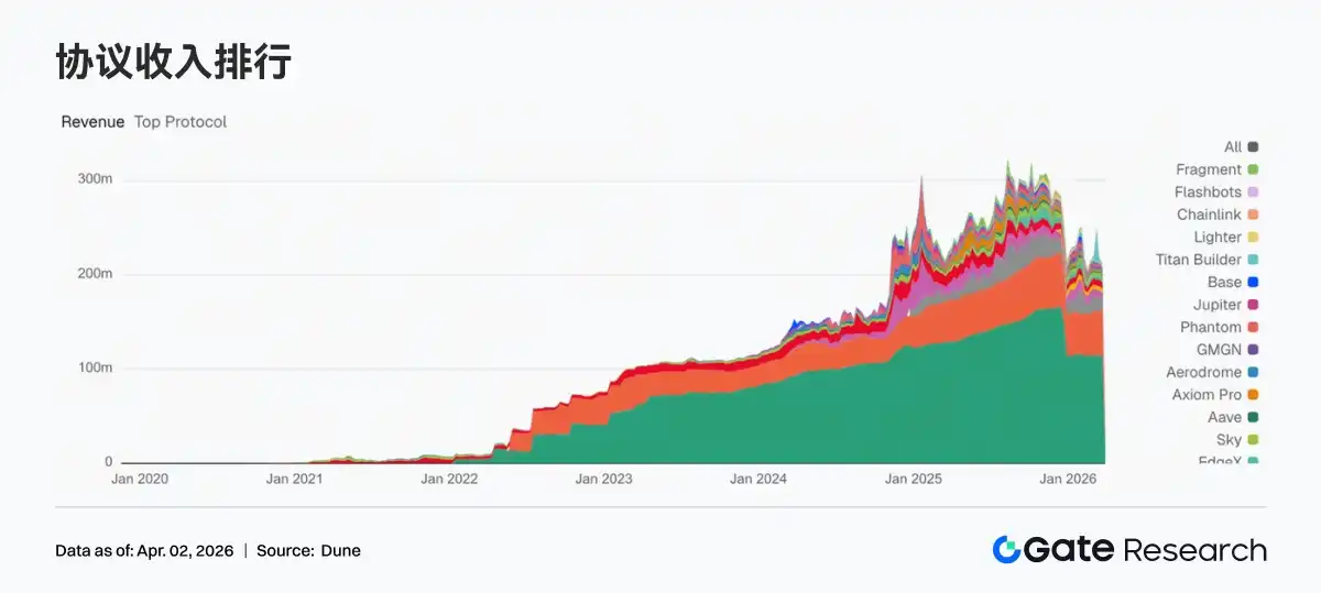Revenue from trading protocols generally cooled down, while stablecoin issuers remained the most stable profit centers. Weekly revenue for Tether and Circle remained stable at high levels. In contrast, Hyperliquid declined from $14.3025 million to $12.6277 million, Pump fell from $7.1452 million to $6.6905 million, and EdgeX also dropped from $4.5534 million to $3.7969 million; the cooling trading activity has already transmitted to the revenue side. Overall, the main theme of protocol revenue this week was whose revenue is less dependent on short-term trading volatility.