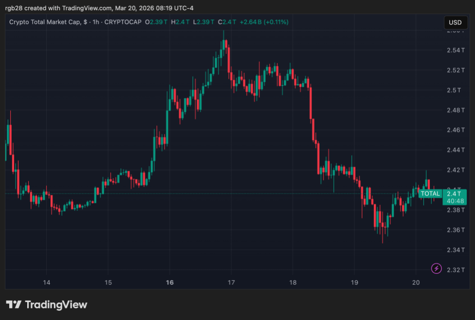 The total crypto market capitalization is at $2.4 trillion in the one-week chart. Source: TOTAL on TradingView