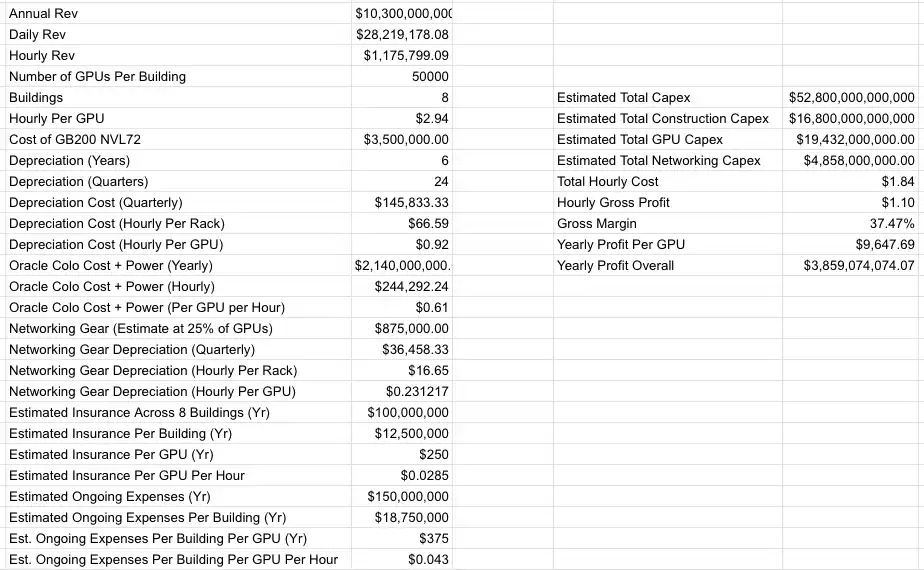 根据我的计算和报道,我估计 Abilene 一旦全面运营,粗略毛利率约为 37.47%: