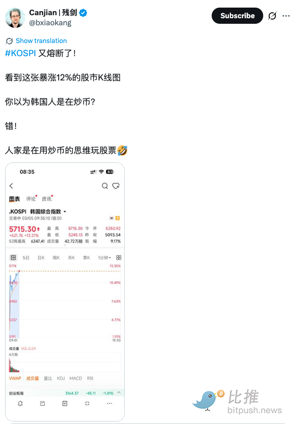 This wave of Korean Won depreciation + stock market爆仓 (liquidation), BTC's safe-haven属性 (attribute) has been verified again, Koreans are rushing in.