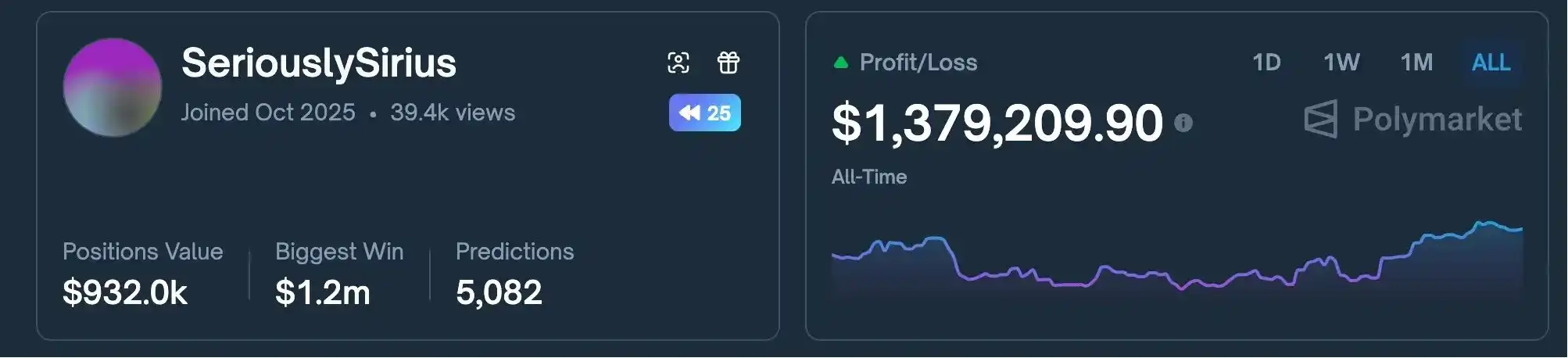 (1) Polymarket official leaderboard data;