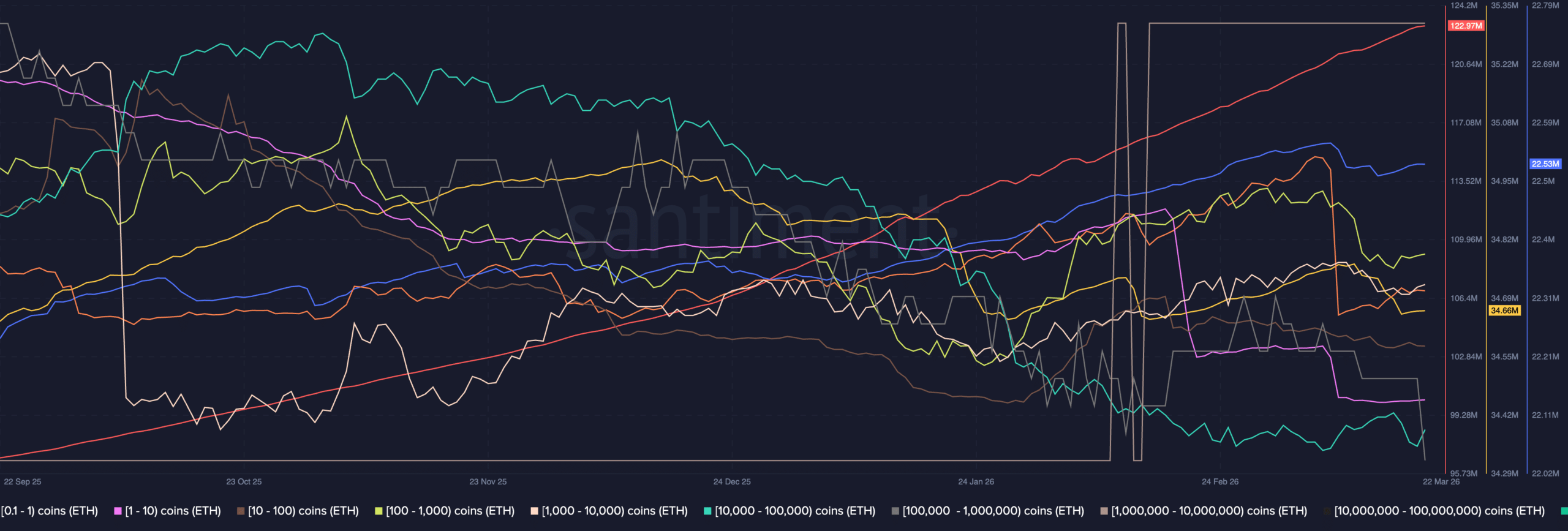 Notably, this accumulation is happening even as ETH trades at $2,071.67, down over 3% in the last 24 hours. This paints a clear divergence between short-term price action and long-term investor sentiment.