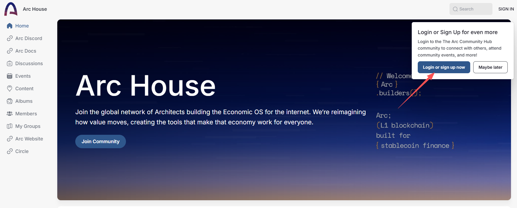 STEP 1. Go to the interaction website (link: https://community.arc.network/), register an account using your Google email, complete the verification, and log in.