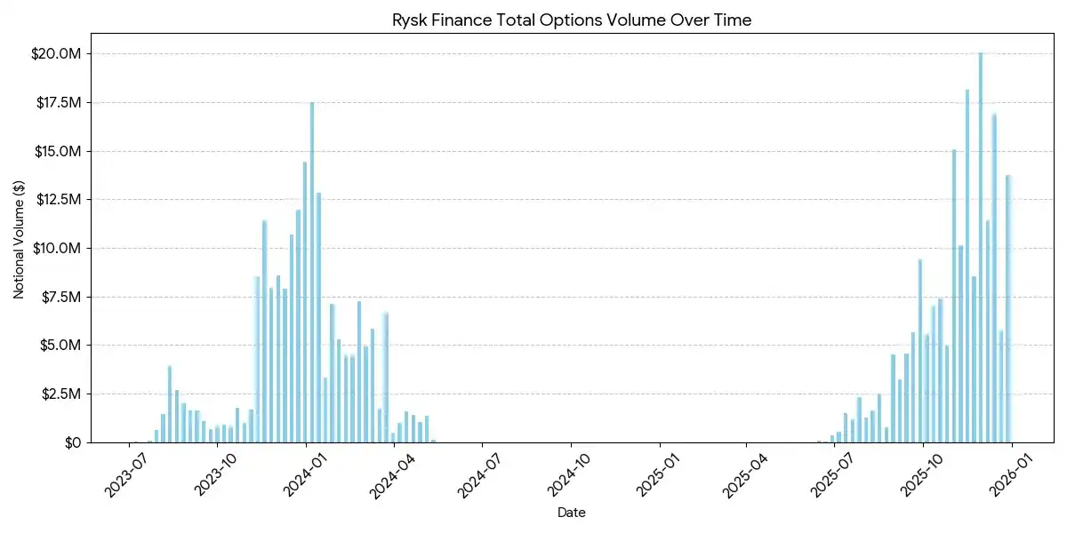 Average position sizes on Rysk reach five figures, indicating institutional-level capital involvement.