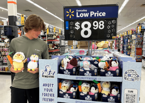 Image – Pudgy Penguins toy shelf in a US Walmart