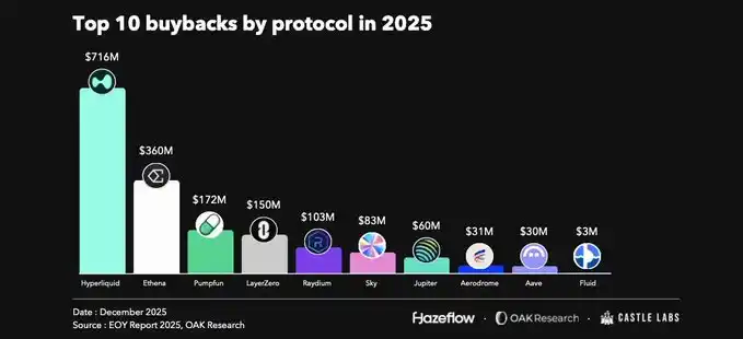 Not only Hyperliquid but also blue-chip DeFi protocols like Aave, Maple, and Fluid have launched buyback programs. Buybacks are a good way to share revenue with token holders, but they require the protocol to have a sustainable revenue source. Therefore, buybacks are more suitable for mature protocols; for new protocols, the early focus should be on growth itself.