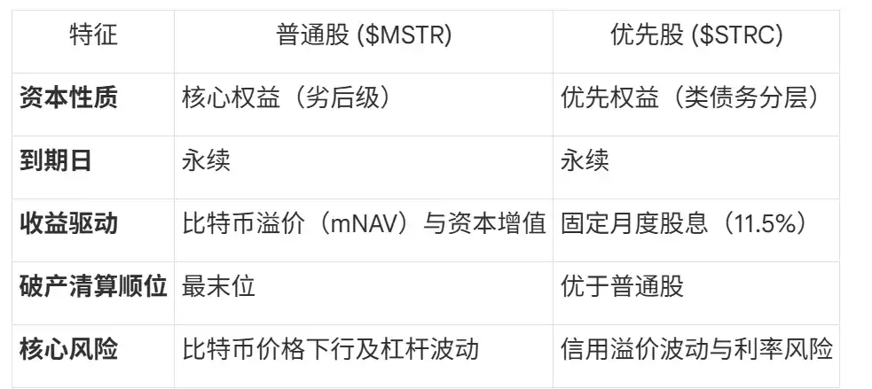 From a financial structure perspective, STRC is a "debt-like" equity instrument issued to external investors. It decomposes Bitcoin's extreme volatility into a credit product with fixed cash flow attributes through layering.
