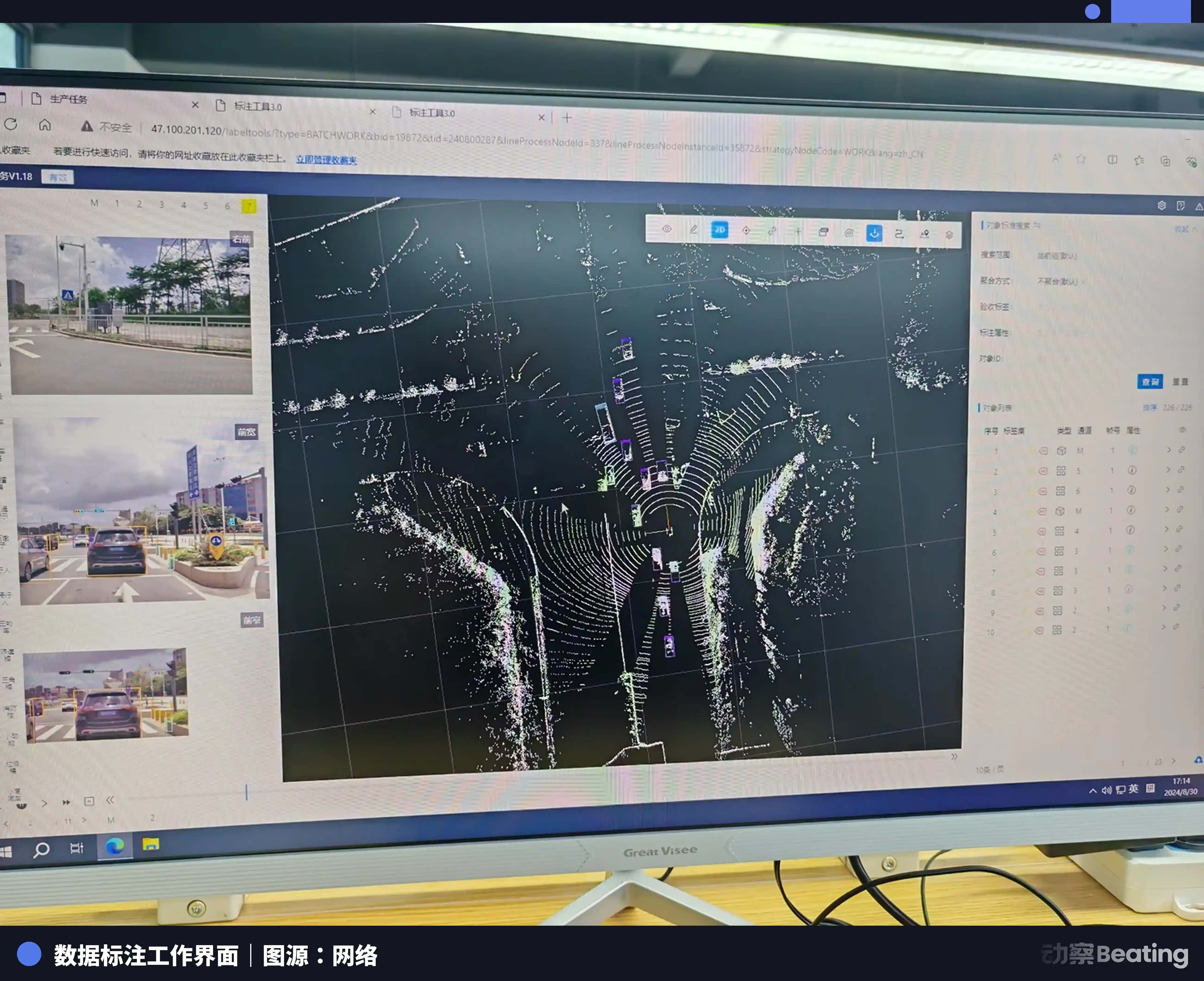 By 2023, the price for simple image labeling had plummeted to 3-4 cents—a drop of over 90%. Even for more complex 3D point cloud images—dense point matrices that require extreme zoom to discern edges—labelers must draw a 3D box in space, encompassing length, width, height, and yaw angle, to tightly wrap around vehicles or pedestrians. Yet such a intricate 3D box earns only five cents.